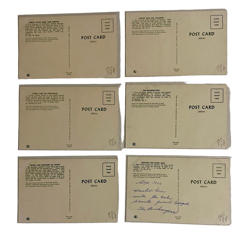 Biblical Postcards Prince Of Peace Memorial Gettysburg Pennsylvania Lot Of 6