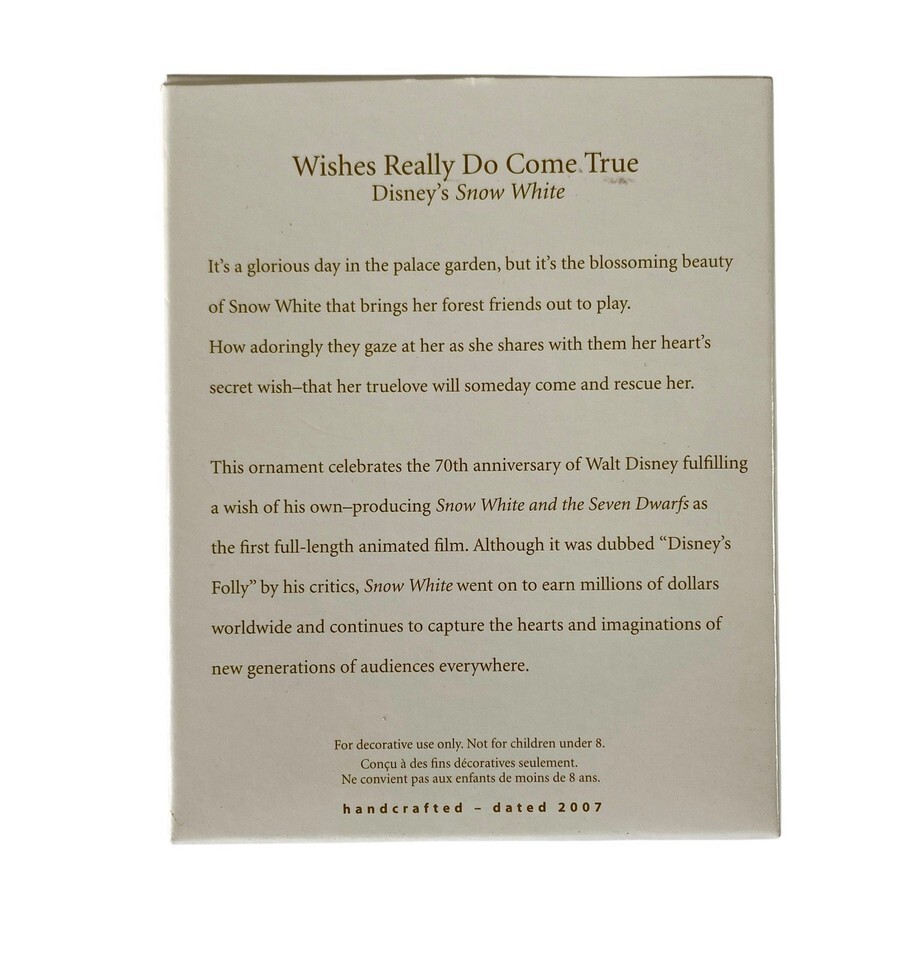 Disney Snow White Christmas Ornament Wishes Really Do Come True Hallmark 2007
