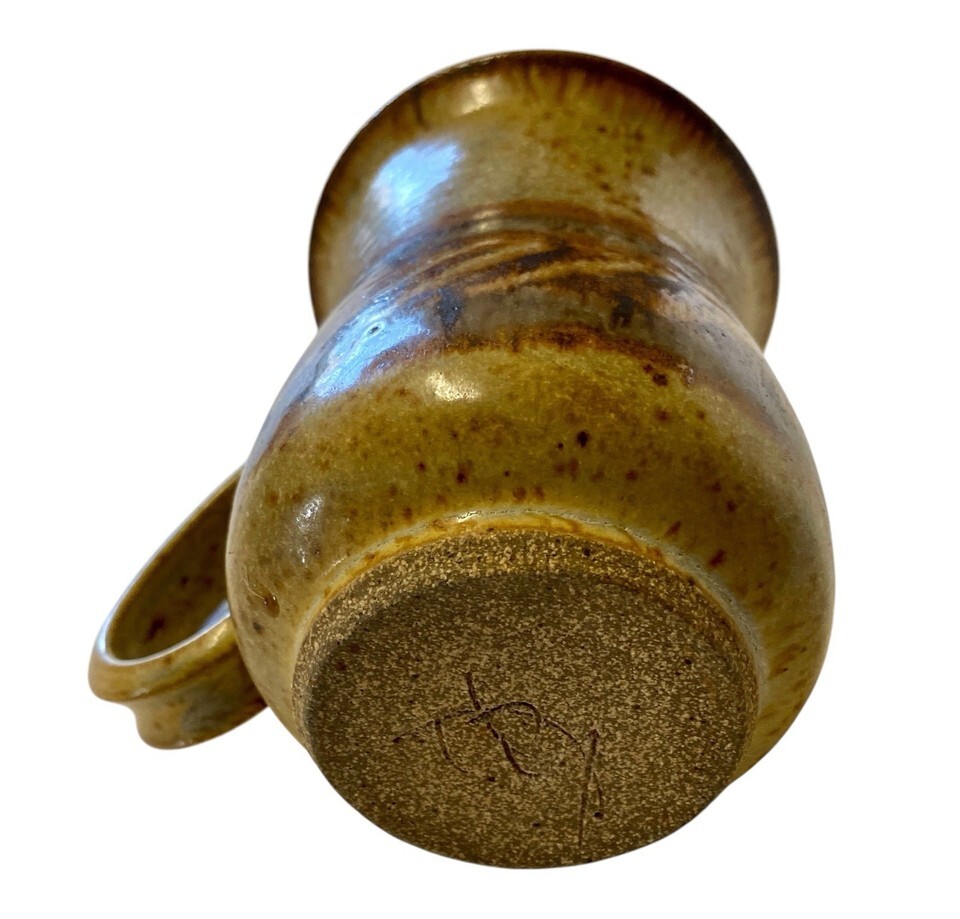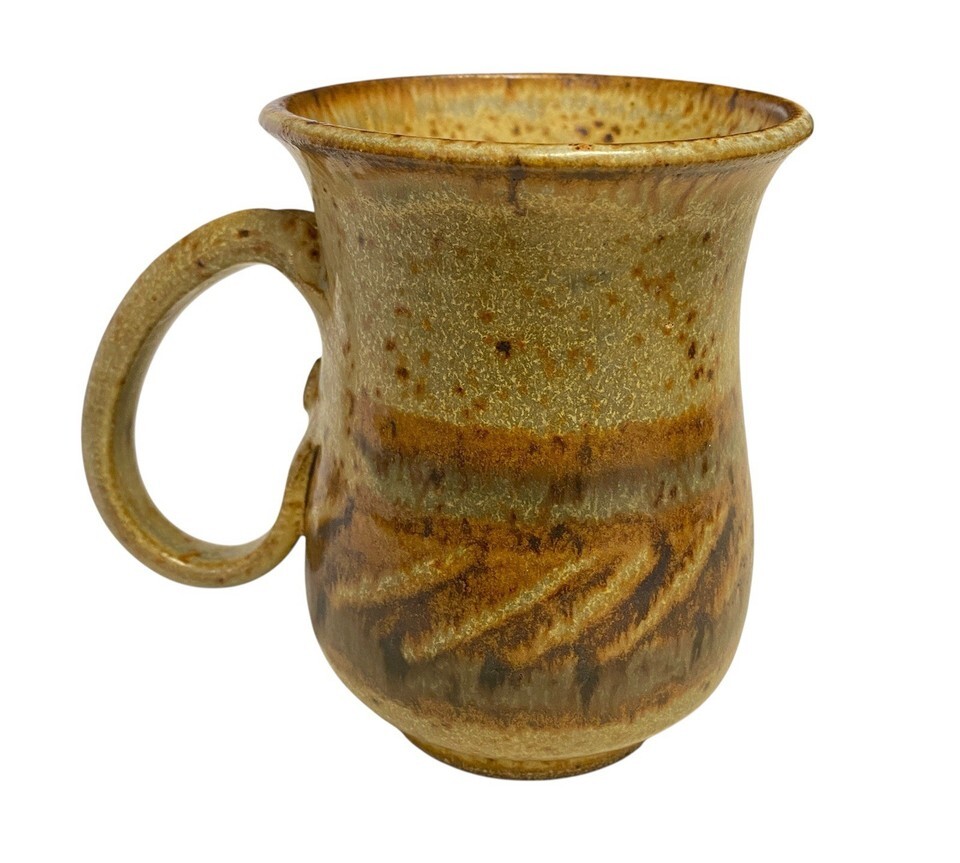 Handmade Coffee Mug Earth Tones Stripe Studio Pottery Stoneware Fun Handle