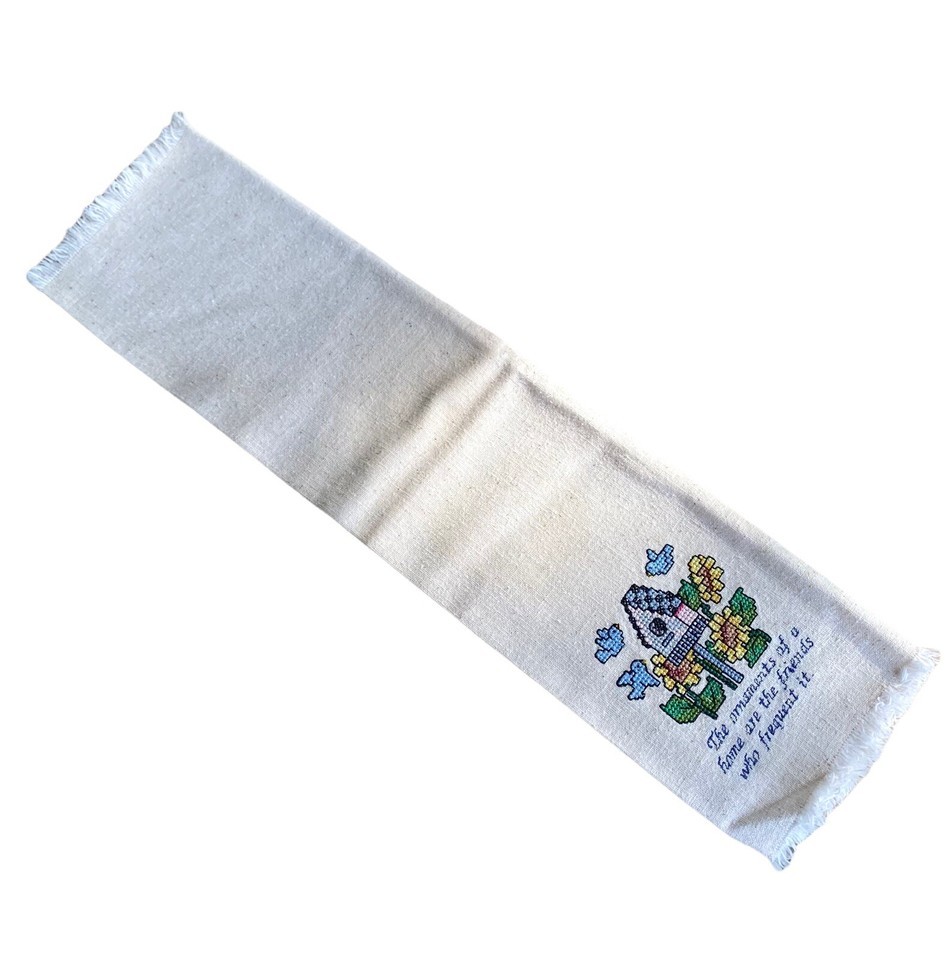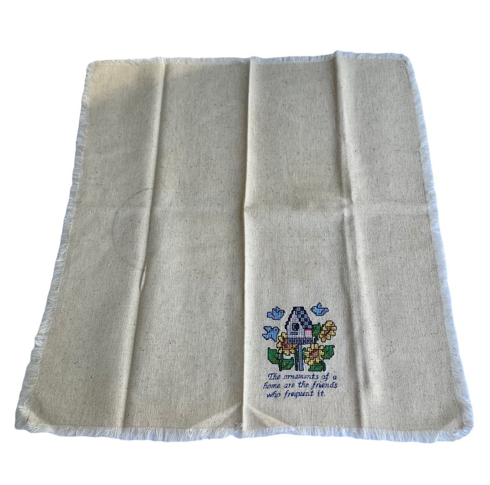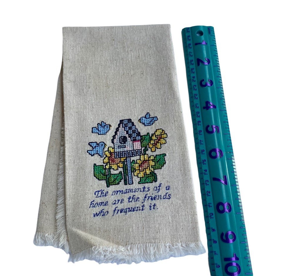 Hand Embroidered Muslin Dish Tea Towel Quote Birdhouse Blue Birds Sunflowers