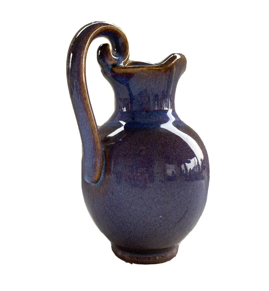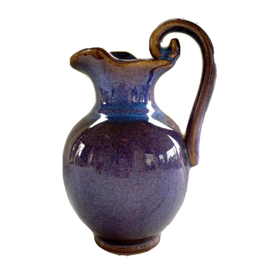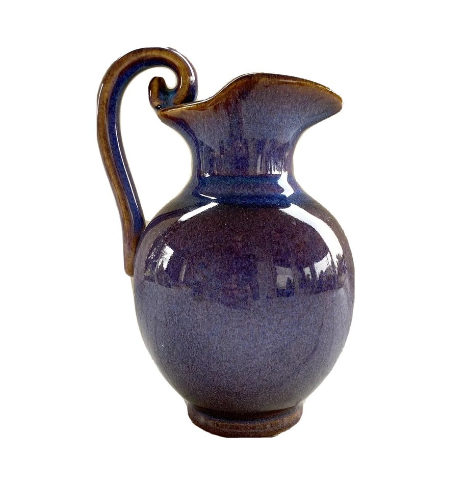 Stoneware Pitcher Lavender Blue Sturdy Spiral Handle Beautiful Pottery Jug 8.5”