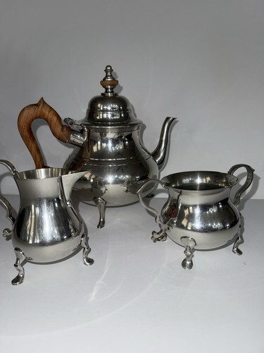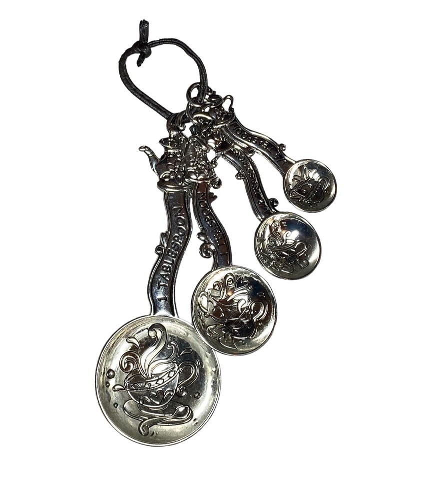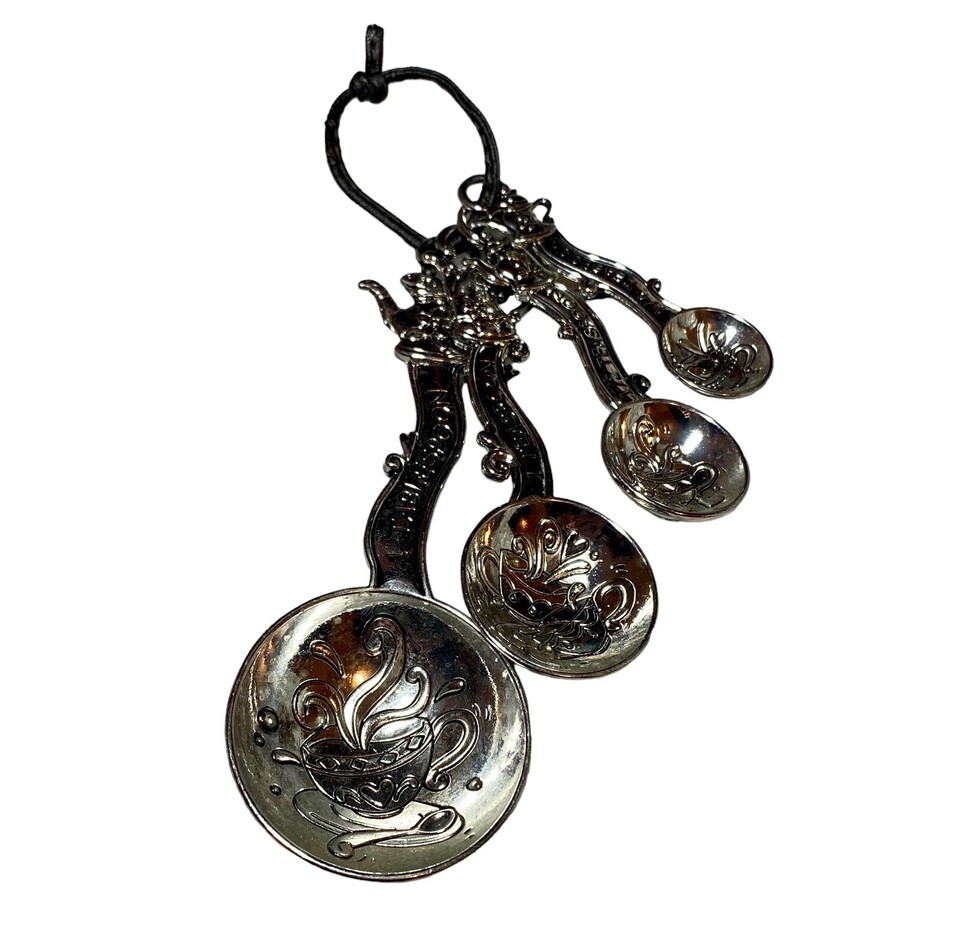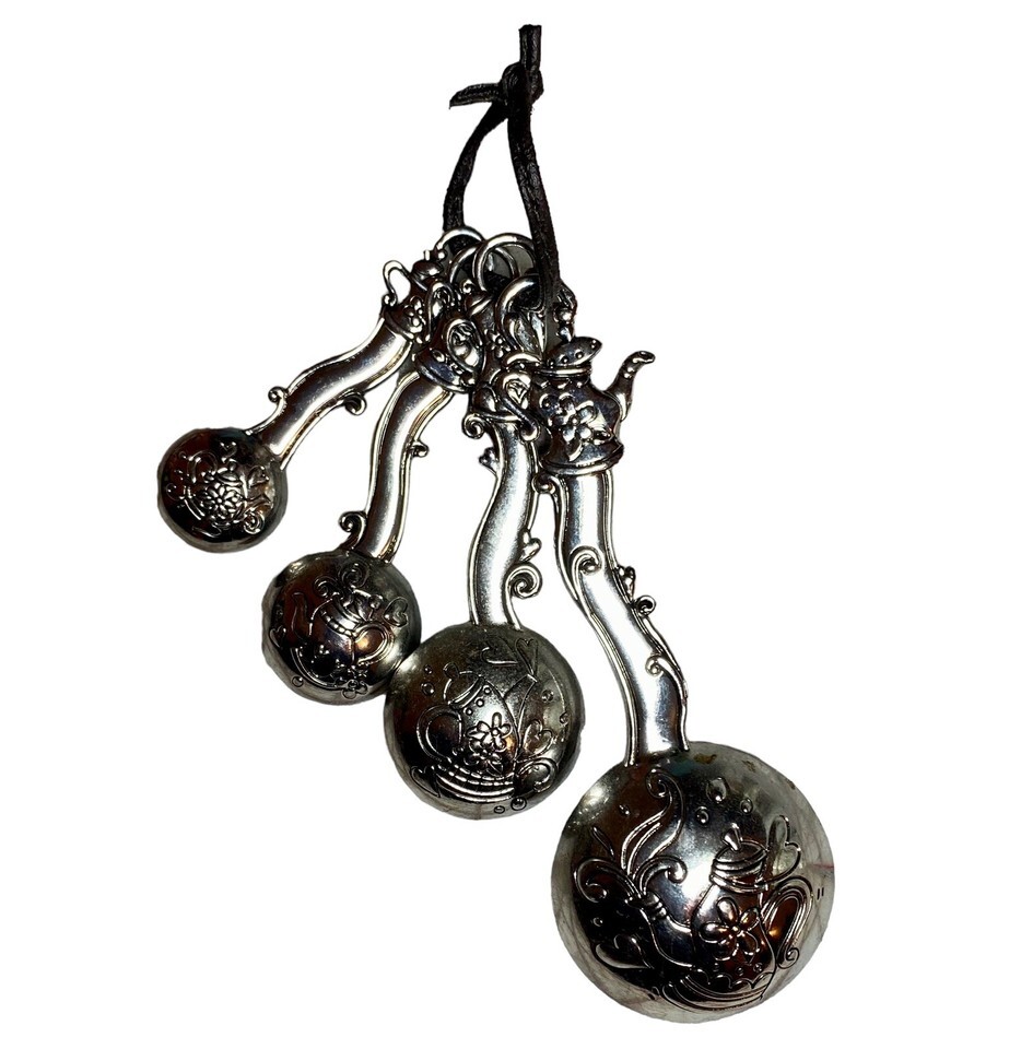 Ganz Dancing Measuring Set Teapots 4 Piece Leather Tie Teacups Silver Tone Cute