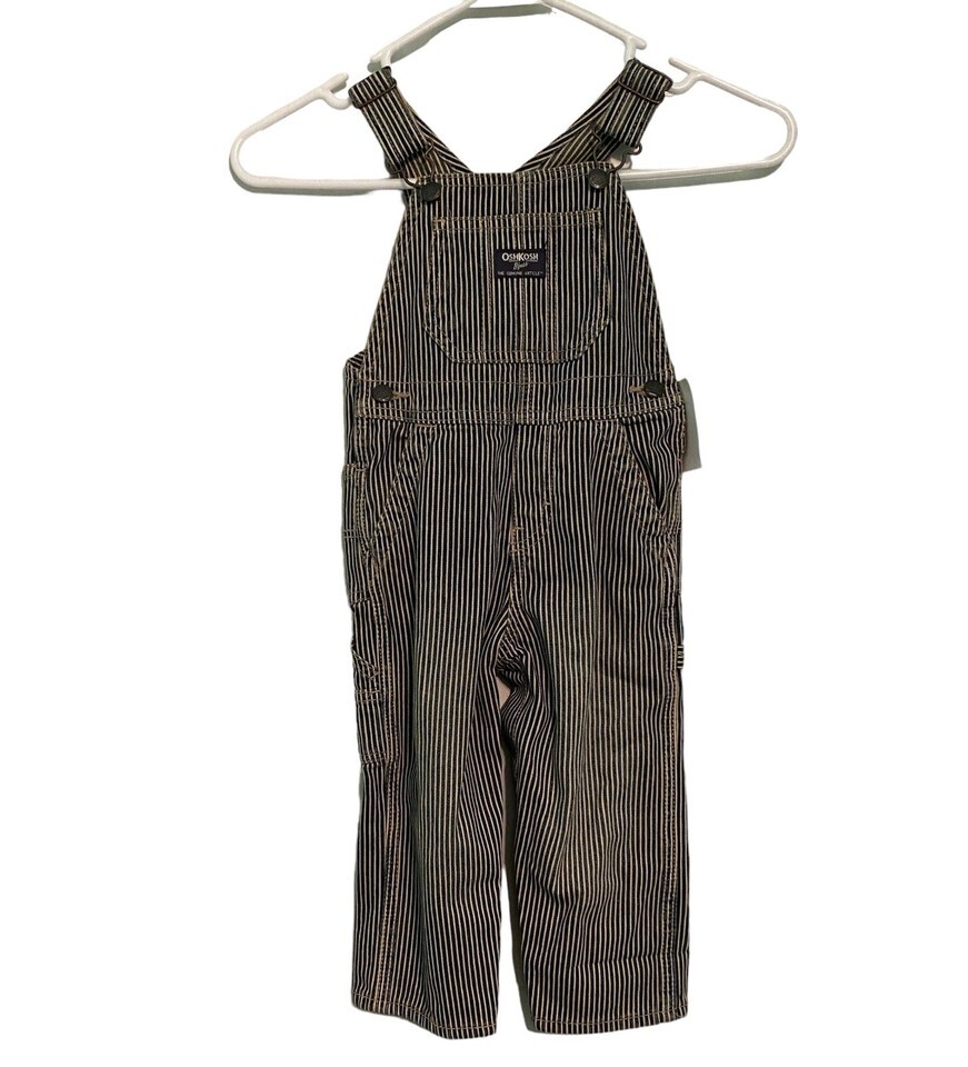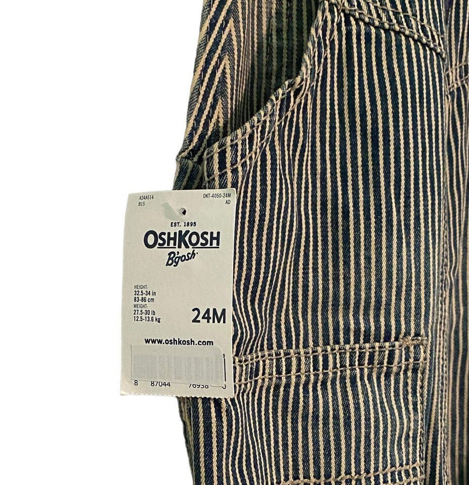 New Oshkosh B'gosh Overalls Vestbak Striped Railroad Size 24M Hickory Pin Stripe