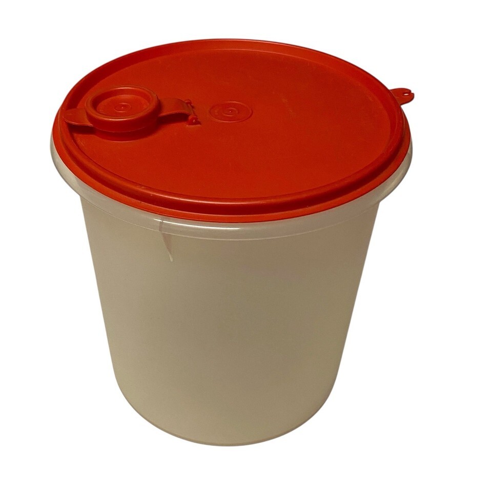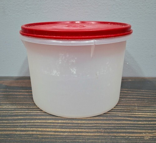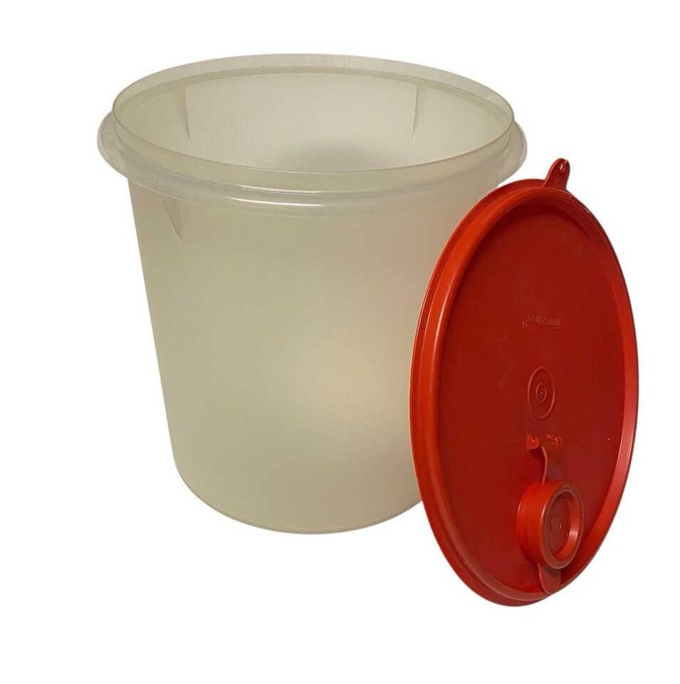 Vintage Tupperware Storage Container with Spout Round Clear Red Lid 510- 50 8.5”