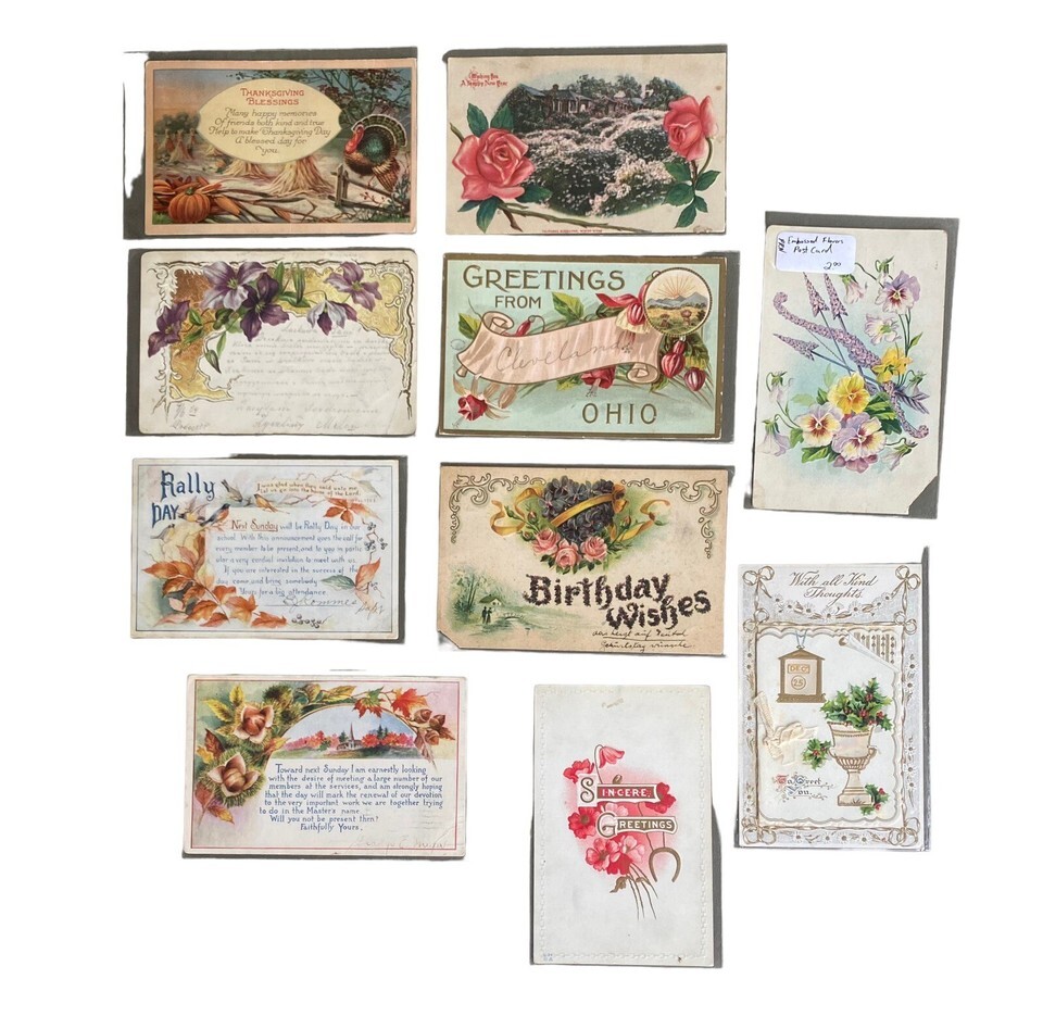 Antique Postcards Holidays Junk Journal Art Lot Of 10 Blank Posted Embossed Card
