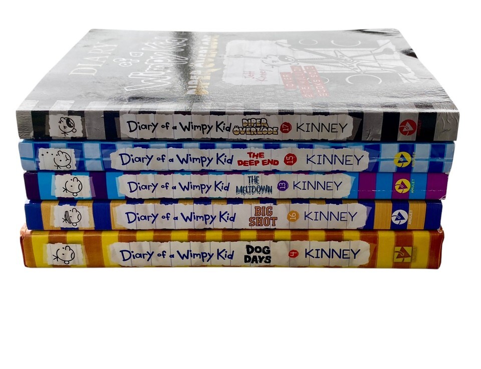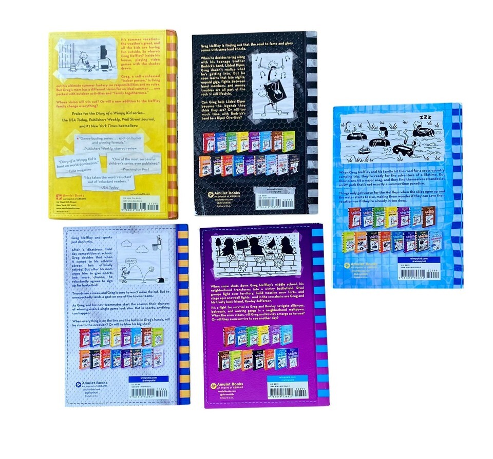 This is a bundle of 5 "Diary of a Wimpy Kid" books by Jeff Kinney. The topics covered include Humorous Stories, School Education, and Family dynamics. The books are set in the United States.