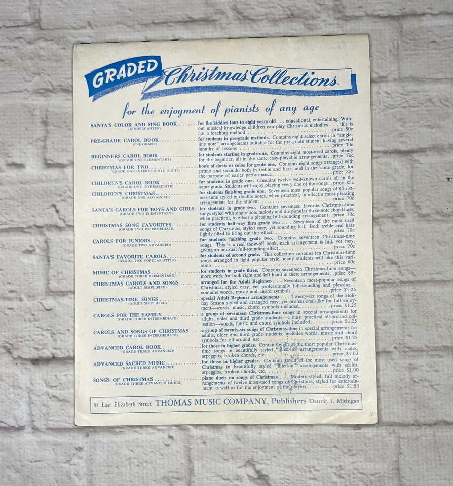 Childrens Christmas Carole Book Thomas Music Company 1957 See Damage In Photos
