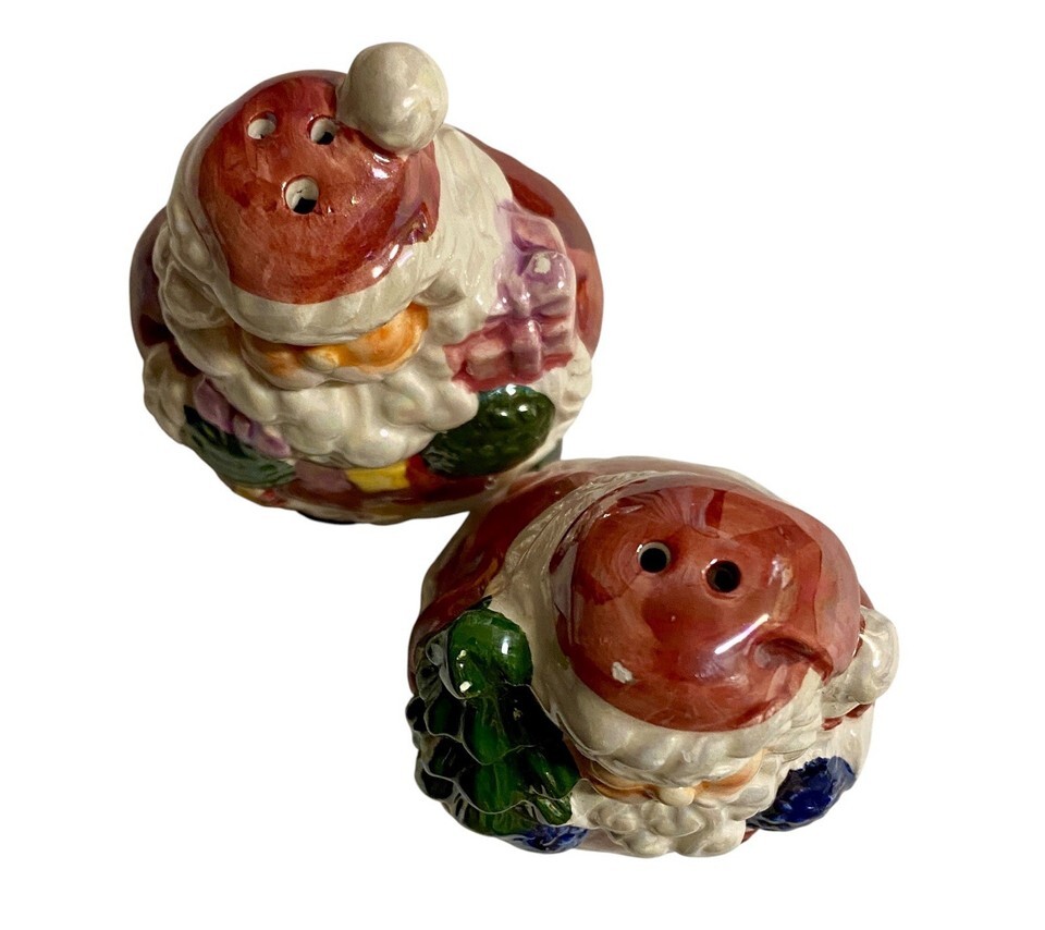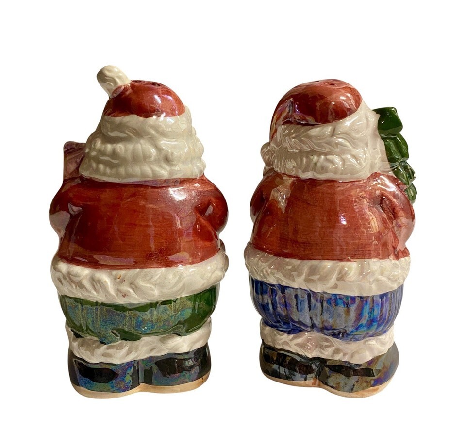 Christmas Lusterware Santa Claus Glossy Ceramic Salt & Pepper Shakers Vtg Flaw