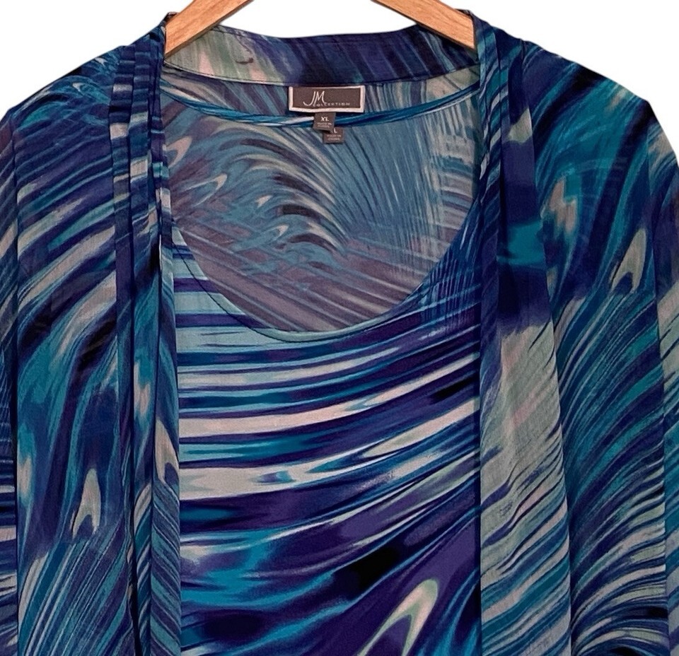 JM Collection 2 Piece Tank Sheer Blouse Size XL Turquoise Blue Cruise Travel