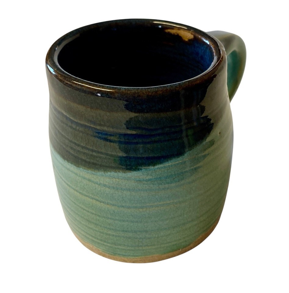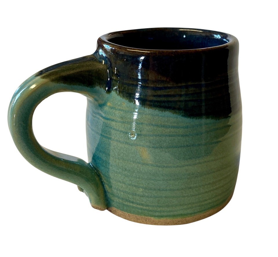 Handmade Mug Studio Pottery Small Teal Aqua Stoneware Cup Heavy 8 Oz Crazing
