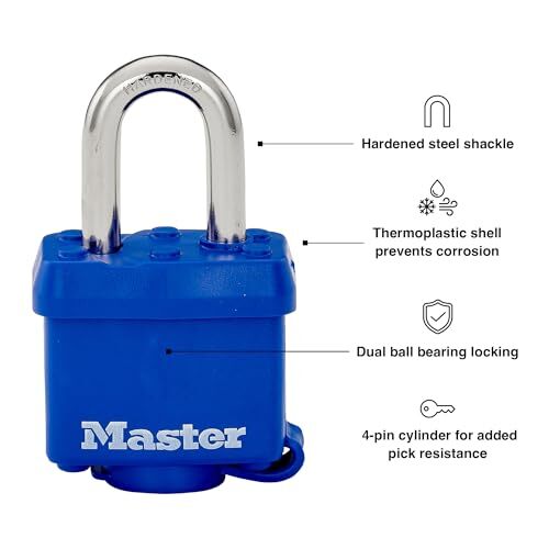 Master Lock 312DLH Laminated Steel Pin Tumbler Padlock, Blue