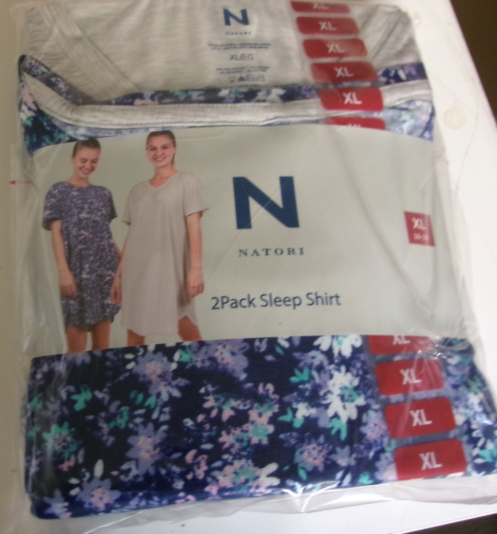 Two Pack Natori Sleep shirts Size XL (dress size 16-18) Floral print and Gray