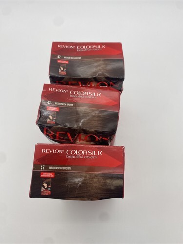 3 pack Revlon Colorsilk Beautiful Hair Dye #47 Medium Rich Brown ~Damaged Boxes
