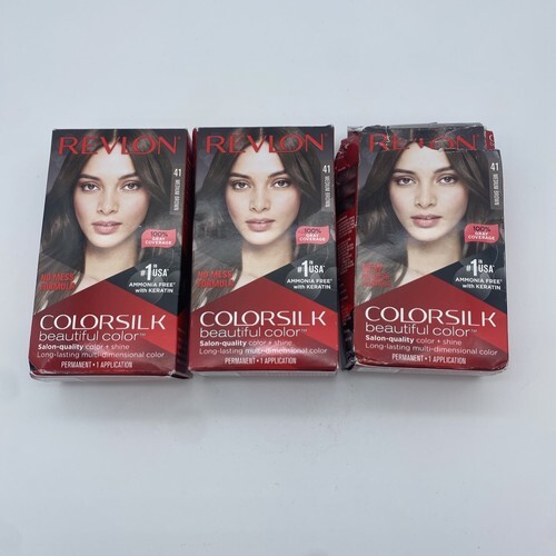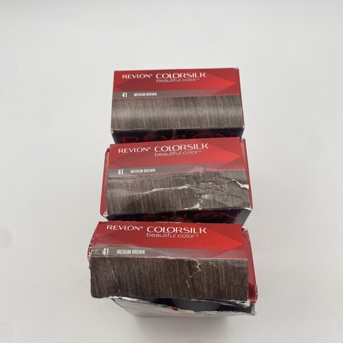 3 PK- Revlon ColorSilk Beautiful Hair Color - 41 Medium Brown. Packages may contain shelf ware , retail stickers or cosmetic imperfections. Box is damaged