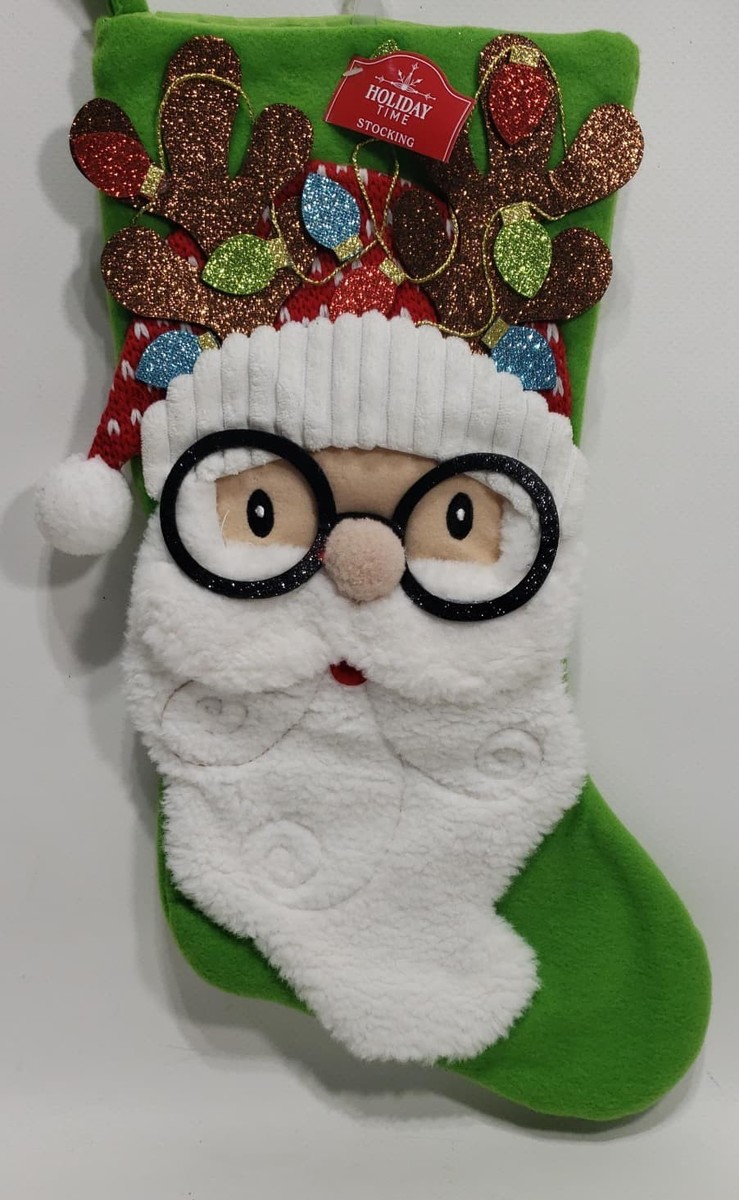 The Holiday Time Nerdy Knit Hat Beard Santa Eyeglasses Christmas Stocking