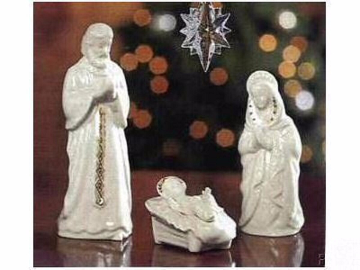 The perfect way to begin your Lenox Nativity collection. Made of ivory fine china, the three-piece set includes Joseph, baby Jesus, and Mary figurines, each accented with precious gold and colorful enamel jeweling.