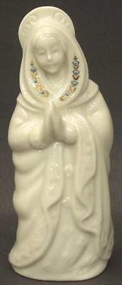 Depicting a mother's love and adoration. The China Jewels Nativity Mary looks down toward the baby Jesus, knowing that she has witnessed a miracle. Her hands clasped in prayer, she thanks God for her good fortune. Accented sparingly with enamel dots and 24 karat gold, this work is an example of superb Lenox artistry. Expertly crafted of ivory fine china.