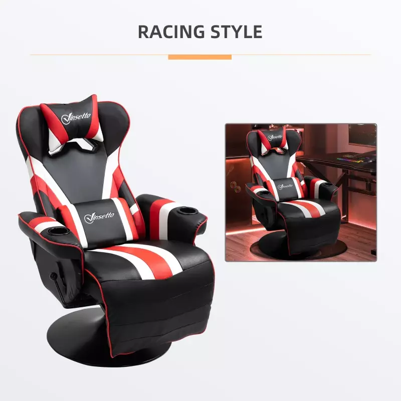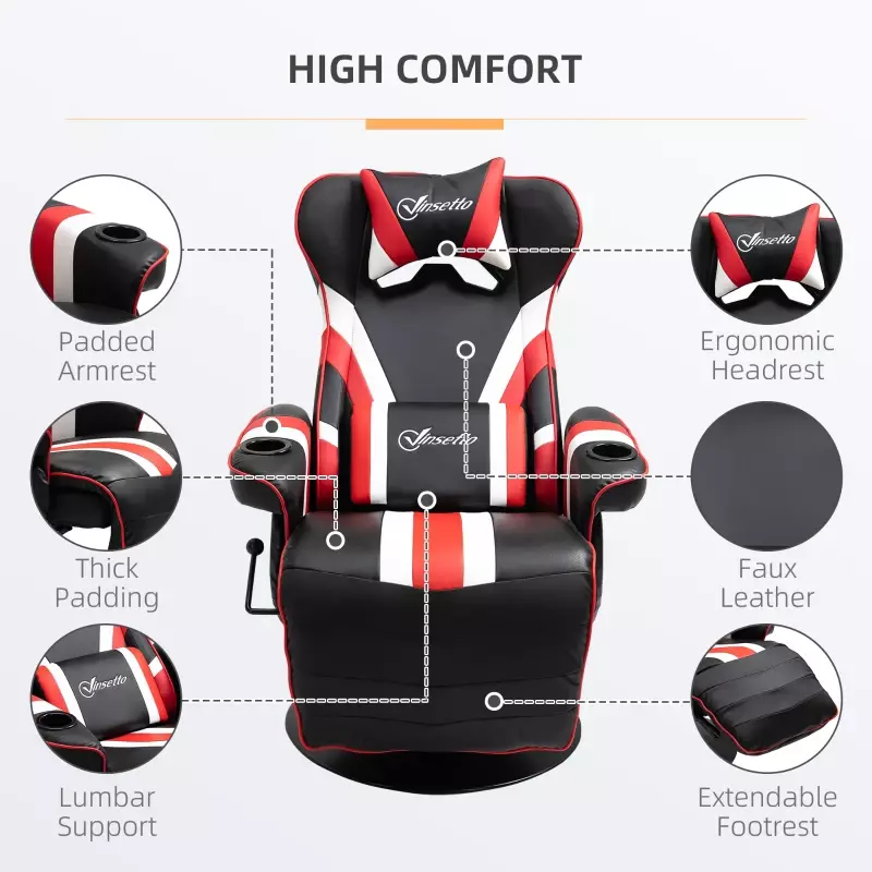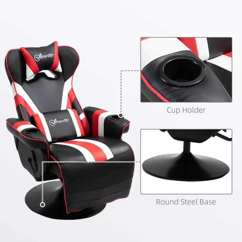 Vinsetto Gaming Chair, Racing Style Computer Recliner with Lumbar Support, Footrest and Cup Holder, Black/White/RedI'm