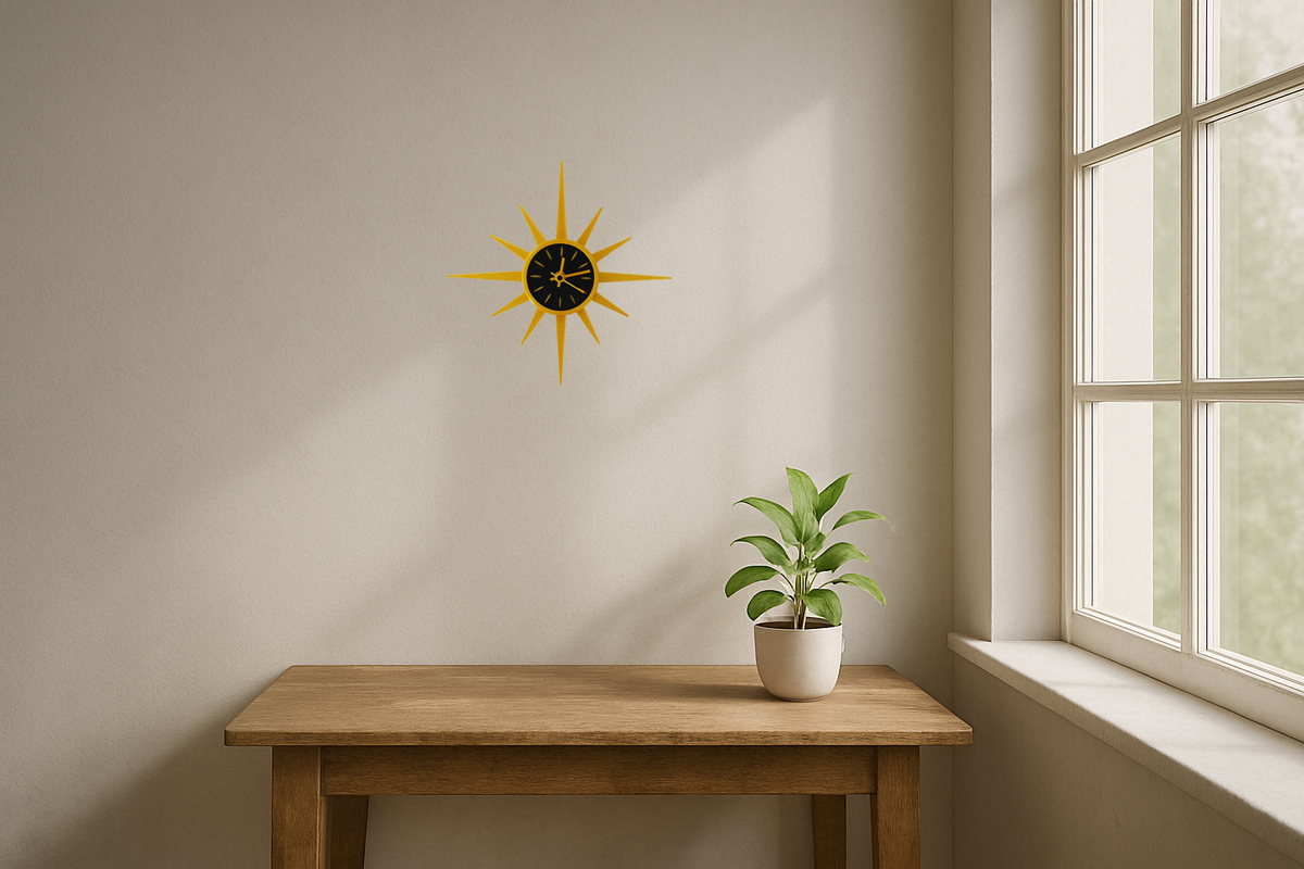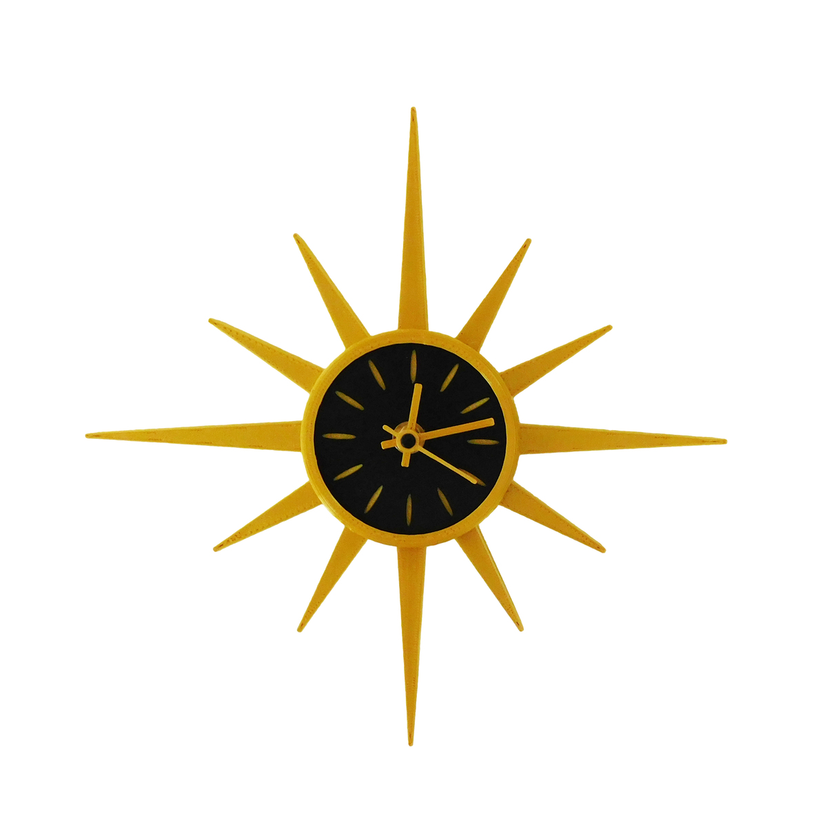 Mid Century Modern Sunburst Wall Clock – 11" Retro Starburst Clock 3D Printed