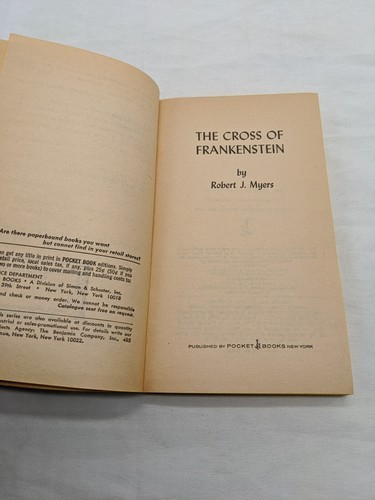 The Cross Of Frankenstein Robert J Myers Science Fiction Novel. Combined Shipping (for USA Customers Only)