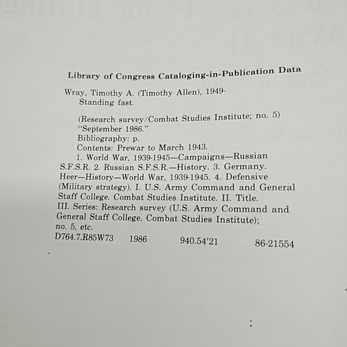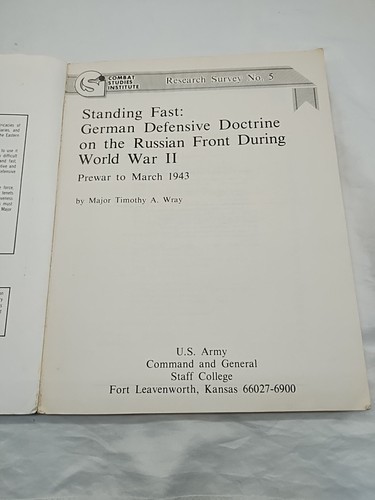 Combat Studies Research Survey No 5 Standing Fast: German Defensive Doctrine