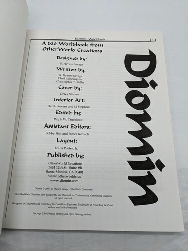 Diomin A D20 Worldbook From Other World Creations RPG Dnd Sourcebook. Combined Shipping (for USA Customers Only)