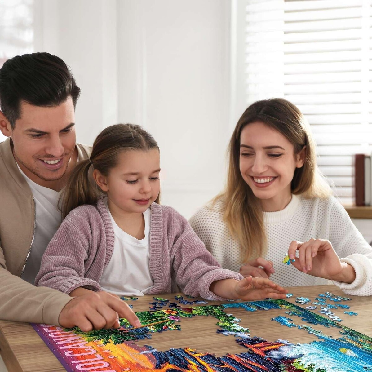 Boardwalk traditional puzzles are proudly manufactured in the U.S.A. from domestic and imported materials. Our jigsaw puzzles are made with premium Eska puzzle blue board produced from 100% recovered paper. Each puzzle comes in a collectable box with magnet close, includes a full-color reference poster, and contains resealable bag for puzzle storage. Boardwalk traditional puzzles are precision cut to fit tightly and ?snap? together.
