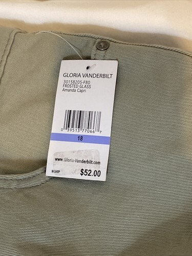 Gloria Vanderbilt Frosted Glass Green Amanda Capri Size 18, NWT