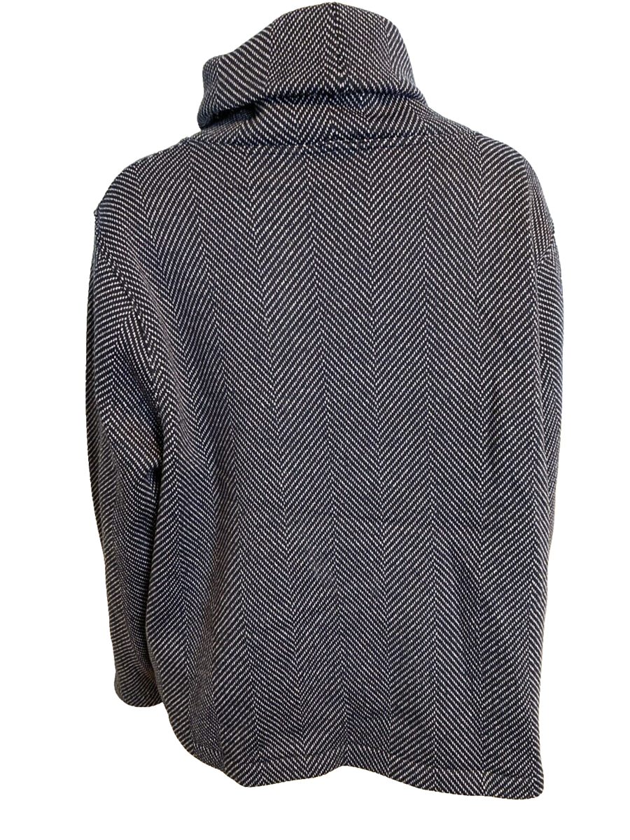 J.Crew Navy White Herringbone Print Fleece Cowl Neck Long Sleeve Top