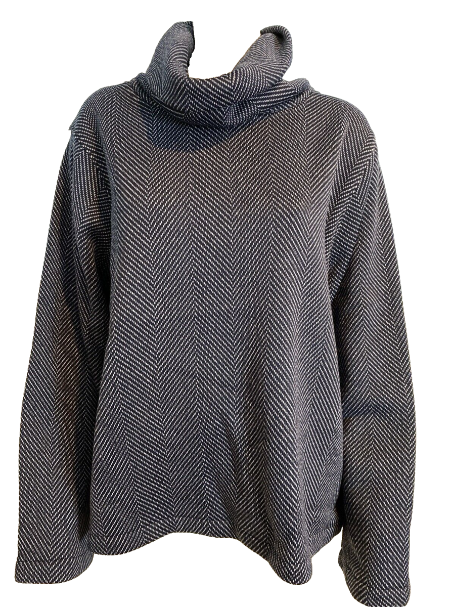 J.Crew Blue and White Herringbone Print Fleece Cowl Neck LS Top Size 3X