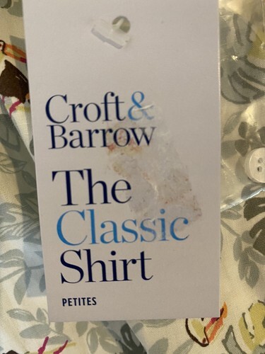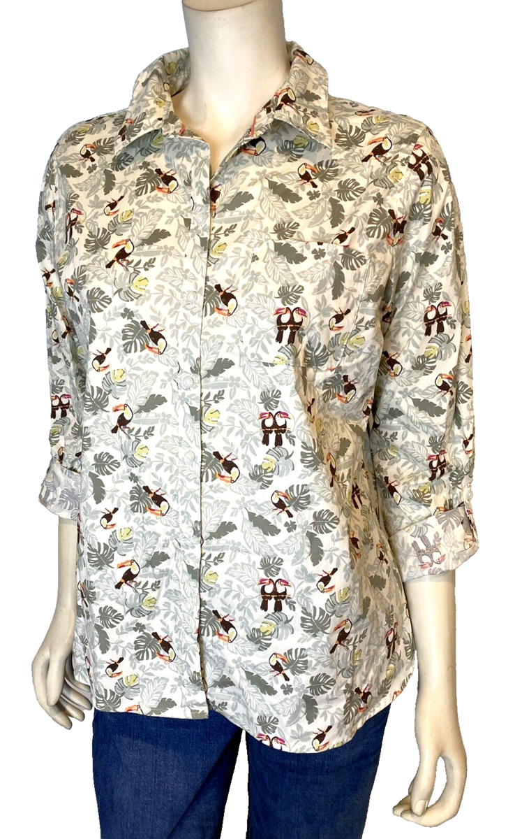 NWT Croft & Barrow Green and Brown Toucan Print Roll Tab Long Sleeve Blouse PL