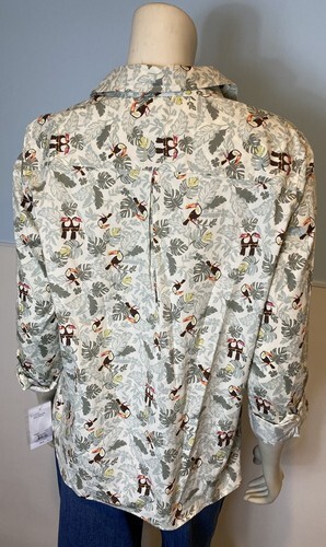 New with tags! Croft Barrow Green and Brown Toucan Print Roll Tab Long Sleeve Blouse