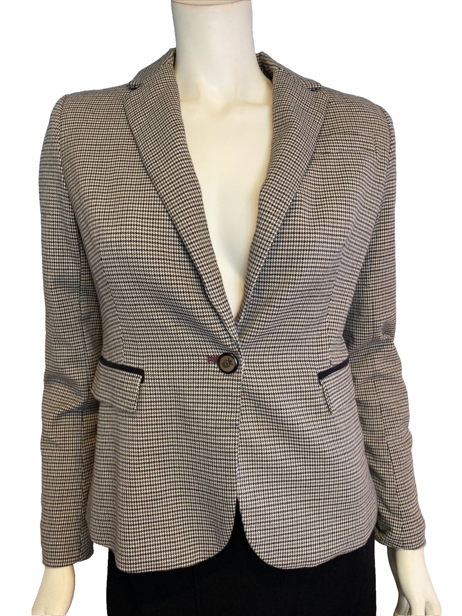 The Savile Row Co. London Tan Herringbone Lined 1 Button Blazer Sz S