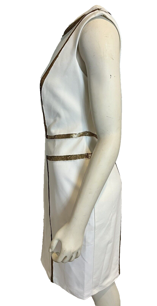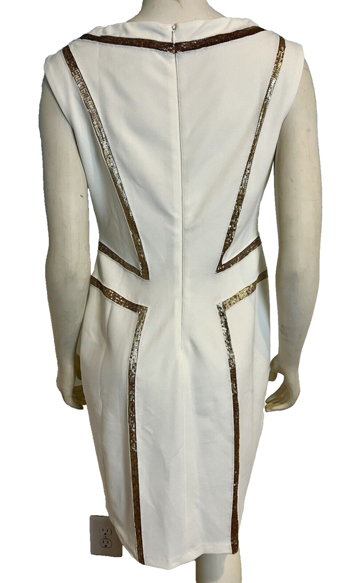 Joseph Ribkoff Women's Sleeveless Dress Cream/ Gold Sequins Sz 10