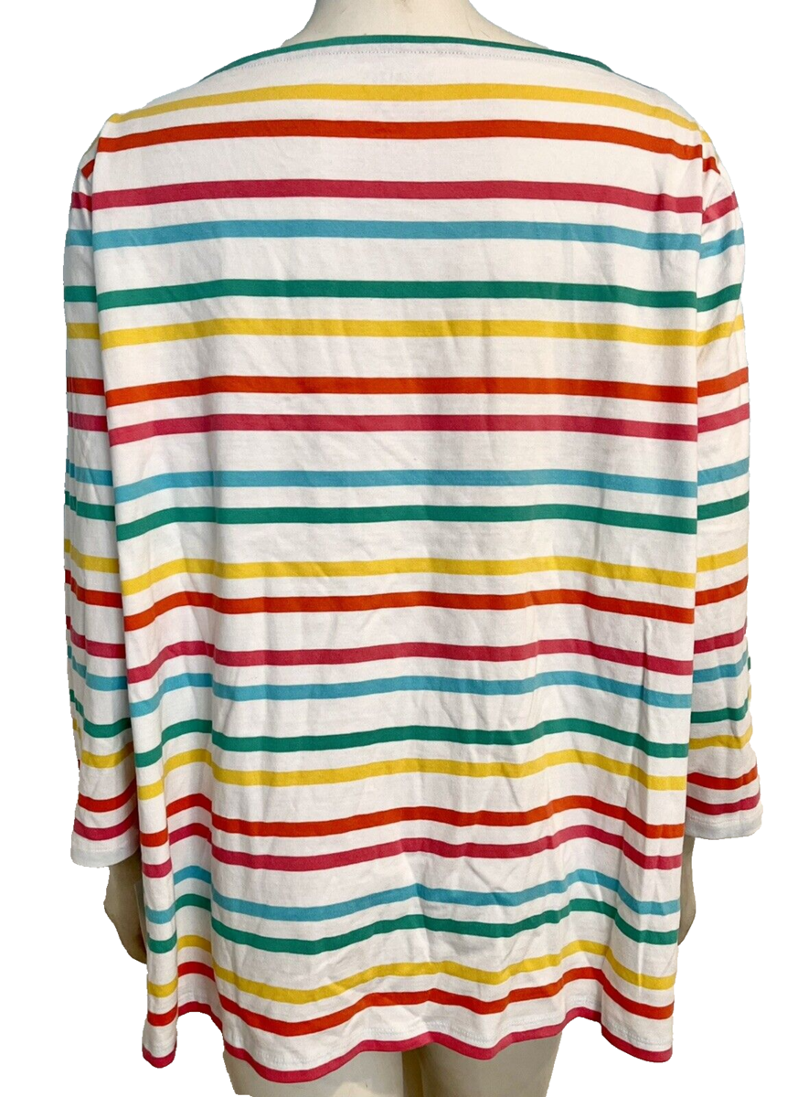Talbots Plus Colorful Striped 3/4 Sleeve Boat Neck T-Shirt Sz 3X NWT