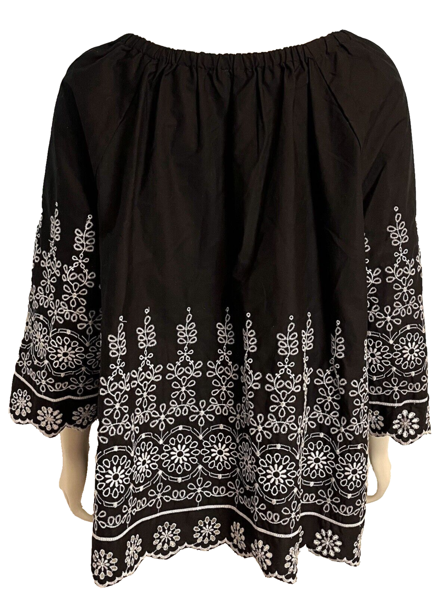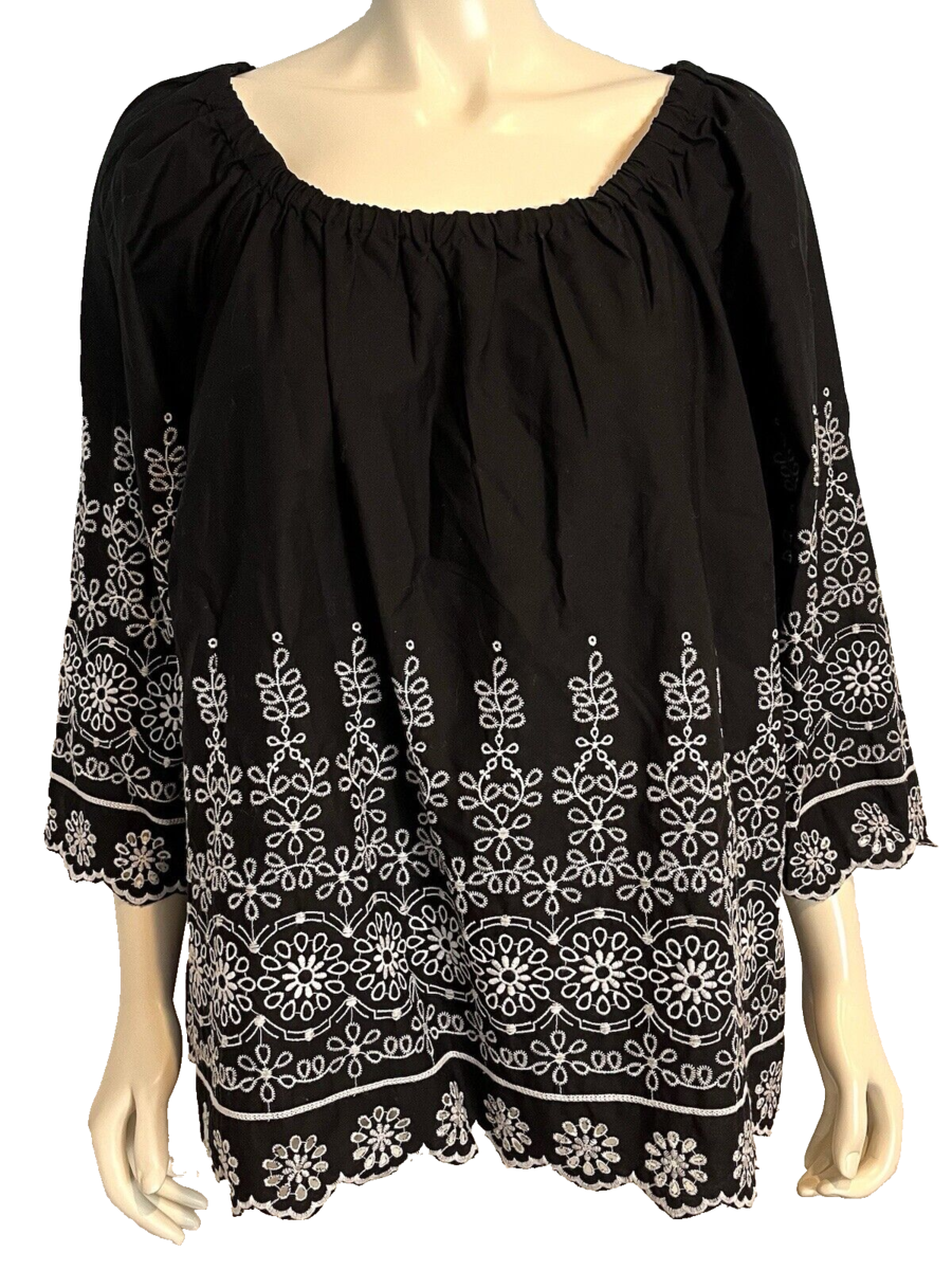 Talbots Women's Petite Off-the-Shoulder Embroidered Blouse Black 3XP
