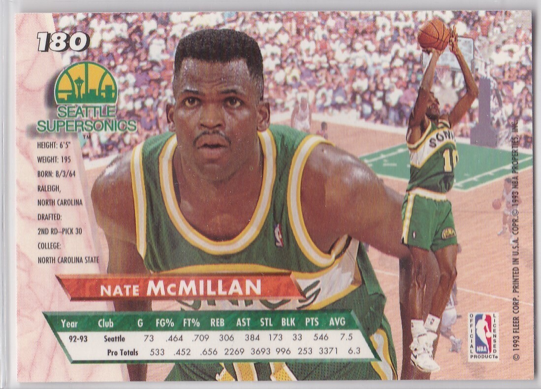 M) 1993-94 Fleer Ultra Basketball Trading Card Nate McMillan #180