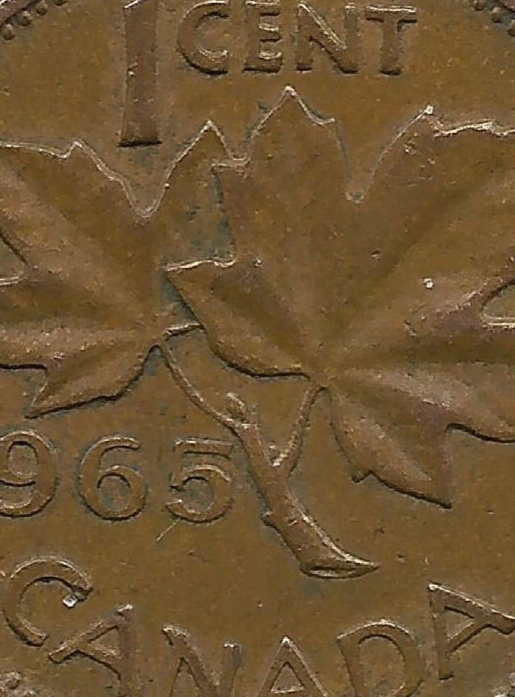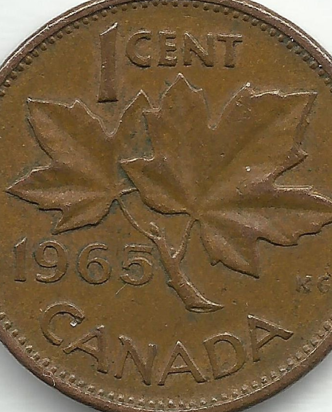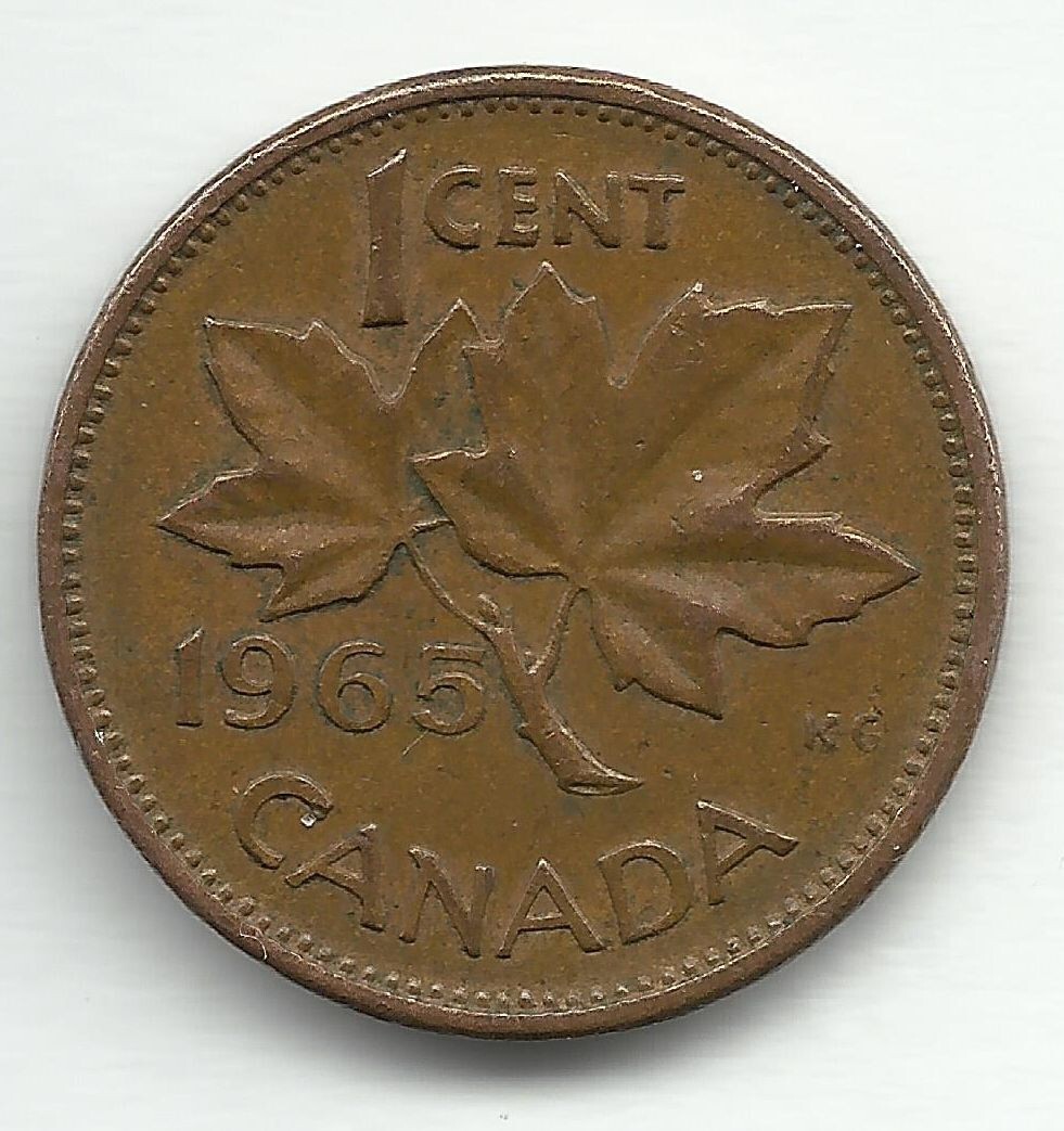 1965 Canada 1 Cent Penny coin Canadian Queen Elizabeth Maple Leaf