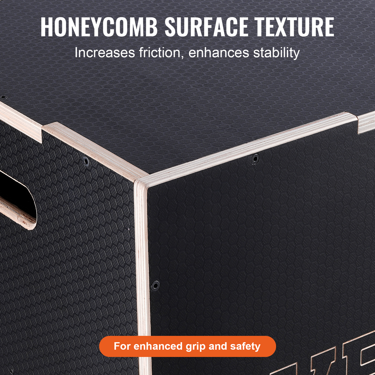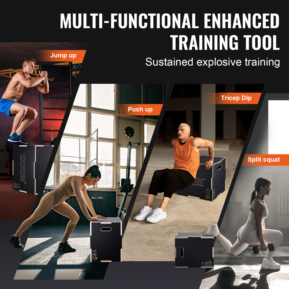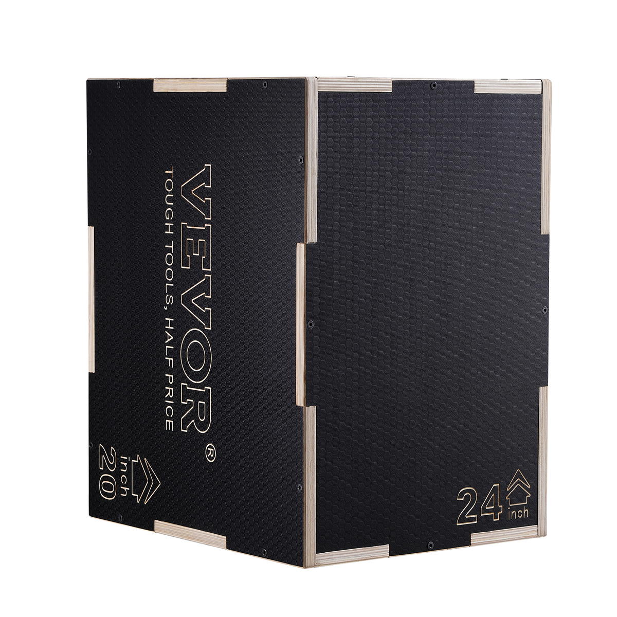 VEVOR 3 in 1 Plyometric Jump Box for Home, 24/20/16 Inch Wooden Plyo Box, Black