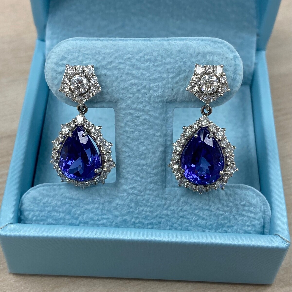 11.49 Karat GIA Violett Birne Tansanit Diamant Tropfen Ohrringe 18k Weiss Gold