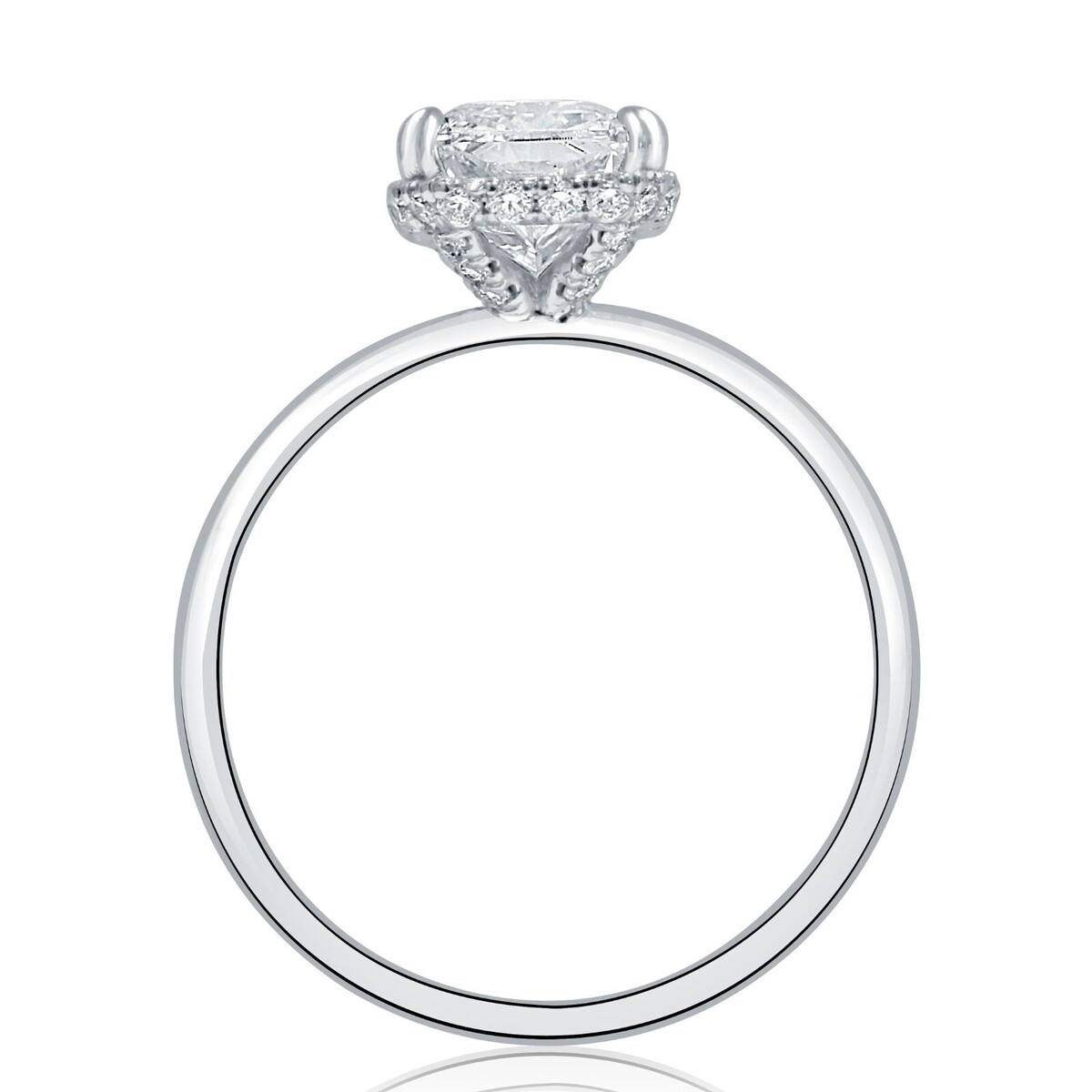 Ein 2,13-Karat-Diamantring aus Labordiamanten mit verstecktem Heiligenschein und rund geschliffenen Seitensteinen. 0,20-Karat-Erddiamanten auf dem Band aus 18-karatigem Weißgold waren eine schone und einzigartige Wahl für einen Verlobungsring. Das Gesamtkaratgewicht betragt 2,33 Karat. Der versteckte Heiligenschein sorgt für zusatzlichen sparkle und vergroßert die Große des mittleren Diamanten, wahrend die seitlichen Steine ??am Ring für einen zusatzlichen Hauch von Eleganz sorgen. Die Verwendung von im Labor gezüchteten Diamanten, die aus umweltfreundlichen und ethisch vertretbaren Quellen stammen, in Kombination mit der klassischen und vielseitigen Weißgoldfassung würde einen Ring schaffen, der sowohl modern als auch zeitlos ist.