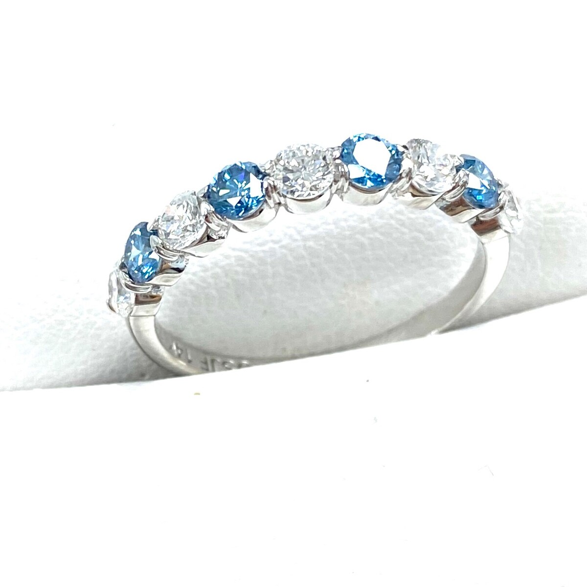 1 Quilate Azul y Blanco Diamante Natural Alternados Alianza 14k Oro Blanco
