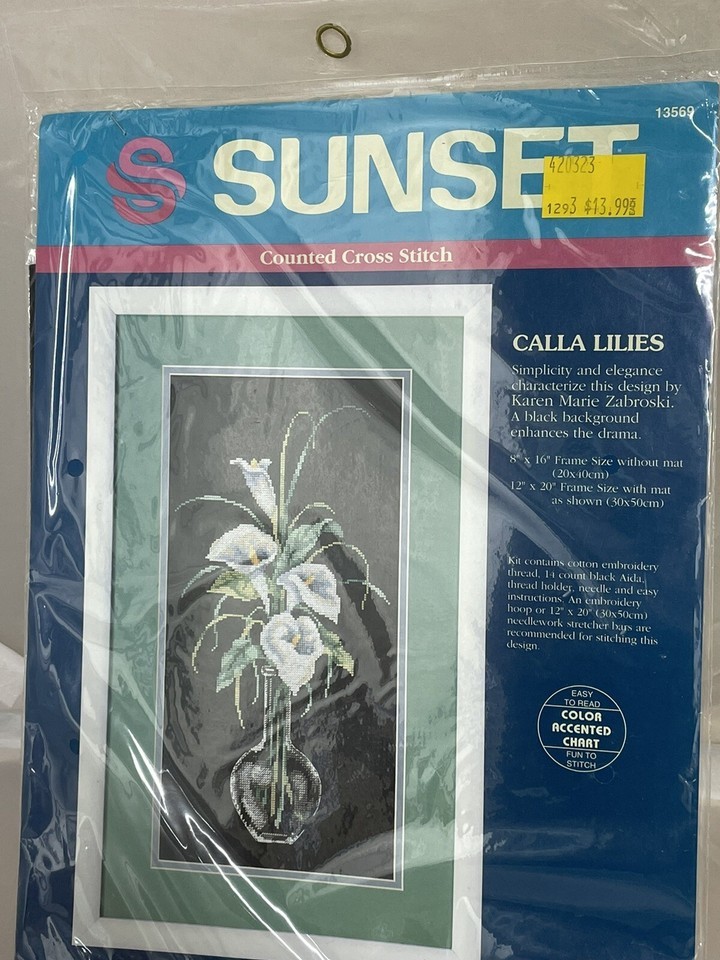Calla Lilies Sunset Counted Cross Stich Exotic Flower Zabroski 13569 Black 8x16.