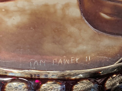 Up for sale is a 14 " Large Bohemian Red Cut To Clear Etched Pope John Paul Jan Pawek Vase.