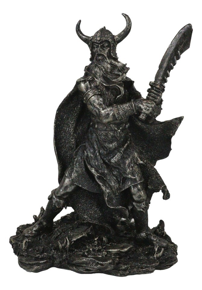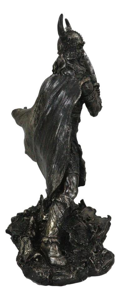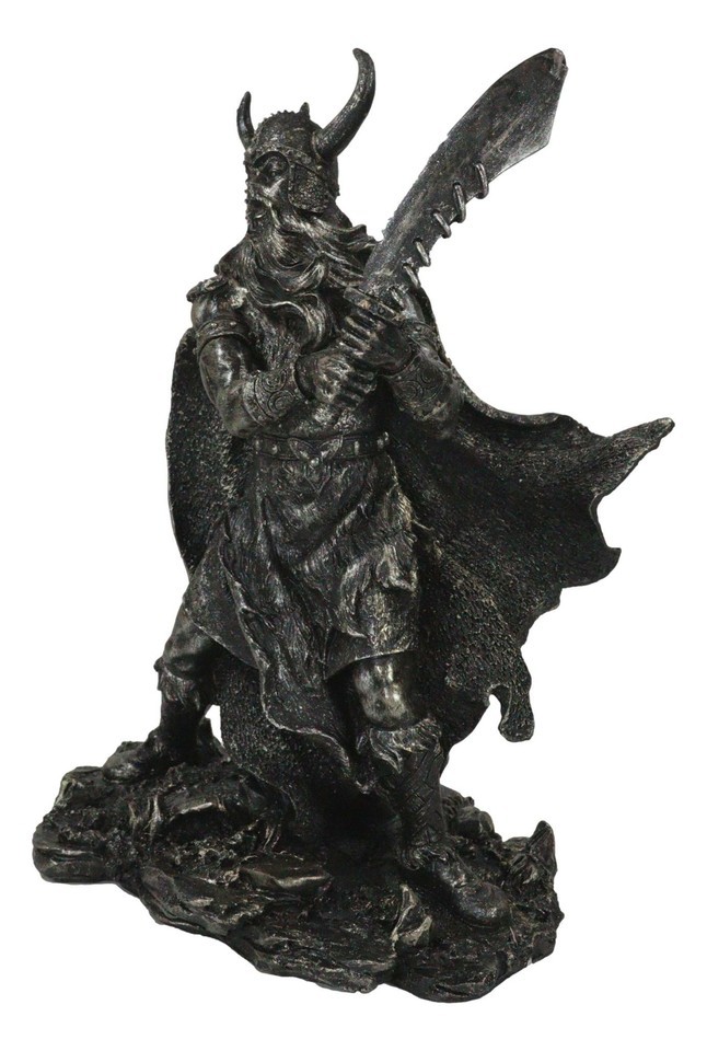 Viking Berserker Warrior With Bull Horn Helmet Wielding Sword Statue 10"H