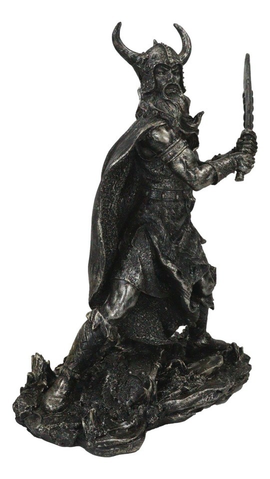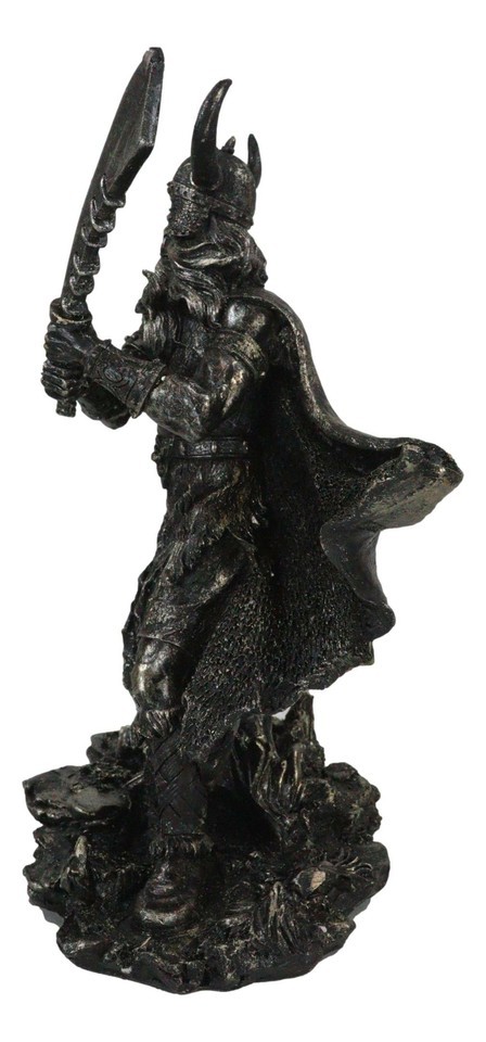 ? This viking warrior sculpture is made of polyresin, hand painted and polished in faux bronze color.