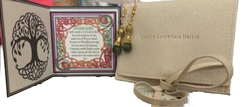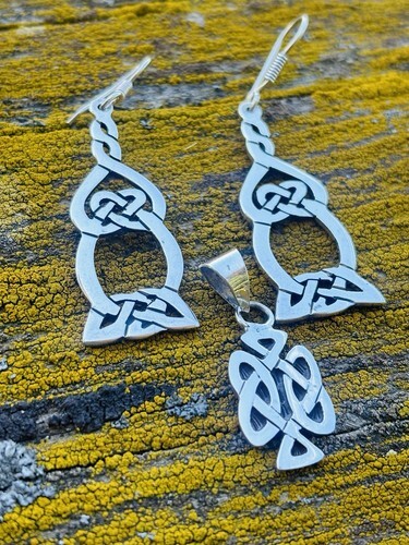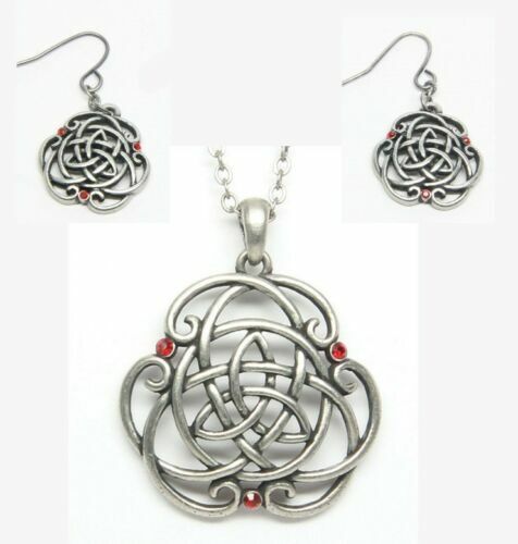 MYSTICA CELTIC THREE GEMS CLUB ALLOY NECKLACE & EARRINGS SET LEAD FREE METAL