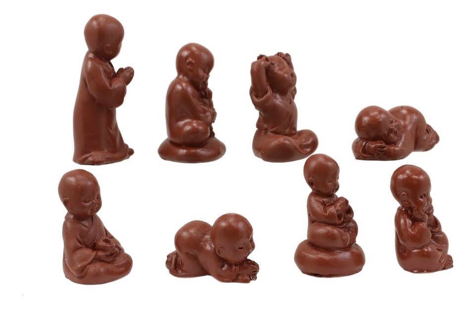 Mini Hotei Jizo Buddha Monks in Multiple Poses Figurine Set of 8 Shaolin Kung Fu