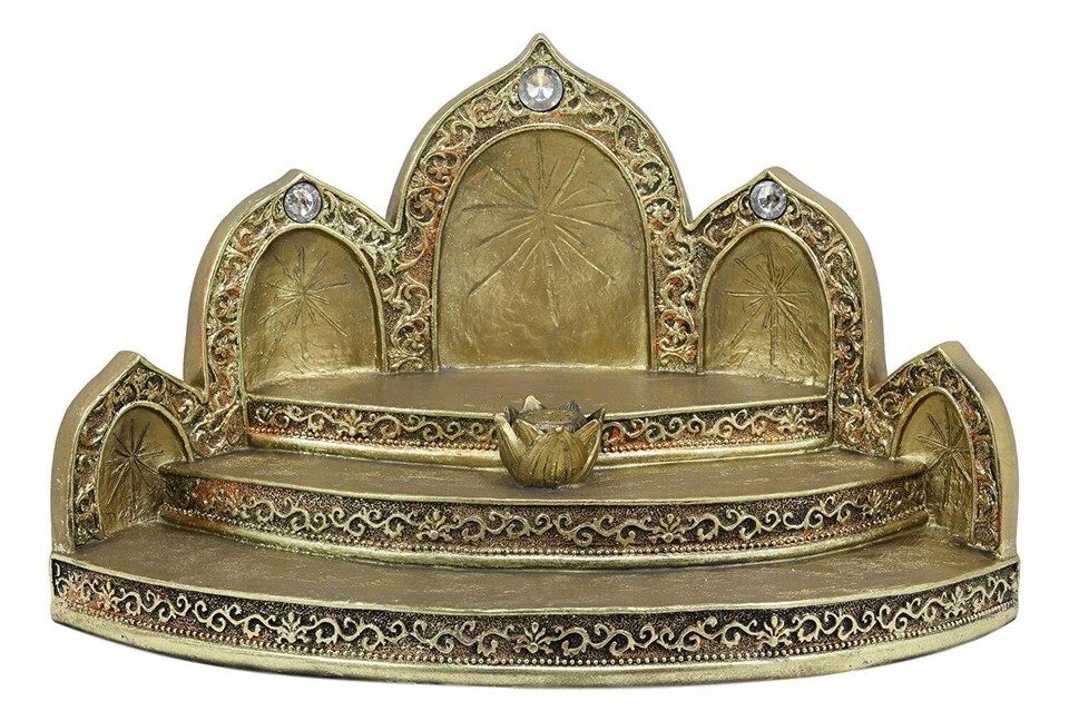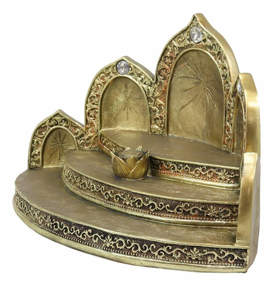 ? This Golden Tibetan Buddhism Altar Shrine Display with Lotus Padma Incense Holder is perfect for displaying our Buddha Miniatures sold separately in our store (3" size category). Painted in gold, the altar display stand is adorned with crystals and lace designs throughout the borders. Light your incense sticks on the padma lotus holder in the center of the display stand as you use this display stand as a Feng Shui or Zen accent decor.
