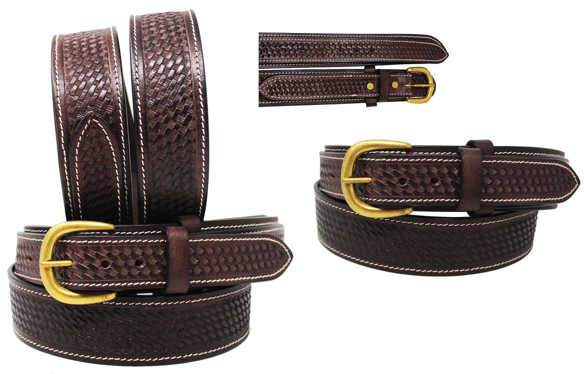 Mens 1-1/2" Western 100% Cow Leather Basket Weave Tooled Ranger Belt 26RAA104